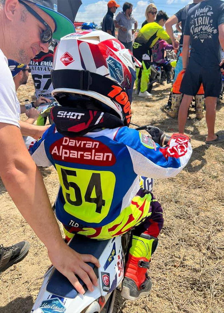 I started riding the electric motorcycle my dad bought me when I was 2.5 years old. My interest in motorcycles increased due to the fact that my father was a professional supermoto racer, competed in the Turkish Motocross Championship for the first time this year..